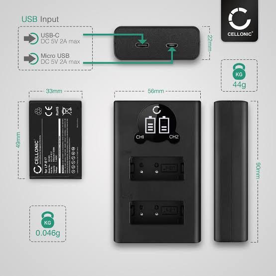 CHARGING STATION FOR 2 CAMERA BATTERIES - Essential accessory for your camera: Charge two batteries at the same time and never be on the go without the necessary energy reserves